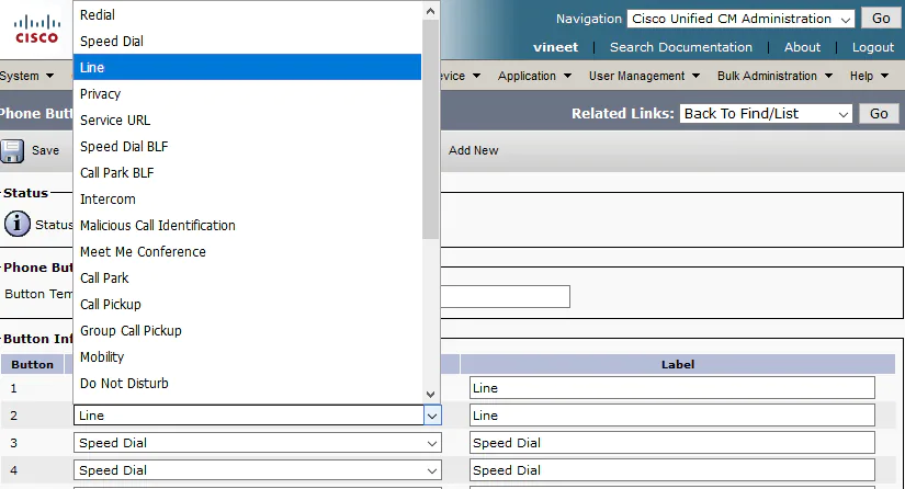 وارد بخش Cisco Unified CM Administration شوید و از منو Device > Device Settings > Phone Button Template را انتخاب کنید.