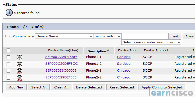 خواهید دید که IP Phone1-1 و Phone1-2 بهصورت خودکار بر روی مرکز تماس Cisco Unified Communications Manager رجیستر میشوند.